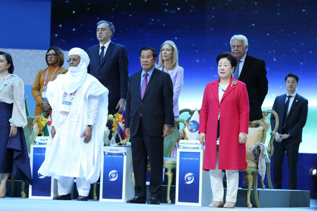 កូរ៉េខាងត្បូង ៖ នៅលើវេទិកាកិច្ចប្រជុំកំពូលពិភពលោកនៅទីក្រុងសេអ៊ូល ប្រទេសកូរ៉េខាងត្បូង នៅព្រឹកថ្ងៃទី០៤ ខែកុម្ភៈ ឆ្នាំ២០២០នេះ សម្តេចតេជោ ហ៊ុន សែន នាយករដ្ឋមន្ត្រីកម្ពុជា បានថ្លែងថា ការរក្សាឱ្យបាននូវសុខសន្តិភាពដែលកំពុងគ្រប់ដណ្តប់លើផ្ទៃប្រទេសកម្ពុជា មិនអាចកាត់ផ្តាច់បានឡើយ ពីការផ្តល់ឱកាសស្មើភាពគ្នាជូនប្រជាពលរដ្ឋគ្រប់រូបនូវផ្លែការនៃការអភិវឌ្ឍសេដ្ឋកិច្ចជាតិ ក៏ដូចជាការអភិវឌ្ឍធនធានមនុស្សឱ្យក្លាយទៅជាធនធានដេលមានសក្តានុពលមិនចេះរីងស្ងួត។ ប្រទេសកម្ពុជា ត្រូវបានគេដឹងថា ជាប្រទេសមួយដែលត្រូវបំផ្លេចបំផ្លាញ និងរងវិនាសសកម្មយ៉ាងធ្ងន់ធ្ងរជាទីបំផុតដោយសារតែវិបត្តិសង្គ្រាមក្នុងរយៈពេលប្រមាណជា៣ទសវត្សរ៍ ។ កម្ពុជាទទួលបានឱកាសអភិវឌ្ឍន៍ប្រទេសឱ្យរីកចម្រើនឡើងវិញ បន្ទាប់ពីភ្លើងសង្គ្រាមត្រូវបានបិទបញ្ចប់ទៅវិញទាំងស្រុងនៅចុងឆ្នាំ១៩៩៨ ។នៅចំពោះមុខឥស្សរជនល្បីៗដែលចូលរួមក្នុងវេទិកាកិច្ចប្រជុំកម្រិតពិភពលោករបស់អង្គការសហព័ន្ធសន្តិភាពសកល សម្តេចតេជោ ហ៊ុន សែន បានថ្លែងថា ជាប្រទេសធ្លាប់ឆ្លងកាត់នូវសង្គ្រាម និងវិនាសកម្មនោះ សន្តិភាពពិតជាមានតម្លៃមិនអាចកាត់ថ្លៃបានឡើយសម្រាប់កម្ពុជា។ សម្តេចតេជោ បន្ថែមថា អ្វីៗគ្រប់យ៉ាង ដែលកម្ពុជាសម្រេចបានមកដល់ពេលនេះ ទាំងការអភិវឌ្ឍ និងទាំងវិបុលភាព គឺជាផ្លែផ្កានៃសន្តិភាព ។ដើម្បីបន្តរក្សាឱ្យបាននូវសុខសន្តិភាព សន្តិសុខសង្គមនេះ សម្តេចតេជោ ហ៊ុន សែន បានលើកឡើងថា ចាប់តាំងពីឆ្នាំ១៩៩៨ ក្រោយរកបានសុខសន្តិភាពពេញលេញ រាជរដ្ឋាភិបាលកម្ពុជា តែងតែផ្តោតការយកចិត្តទុកដាក់ដល់ការអភិវឌ្ឍធនធានមនុស្ស ដោយចាត់ទុកការការអភិវឌ្ឍធនធានមនុស្សជាអាទិភាពក្នុងចំណោមអាទិភាពចម្បងៗទាំង៤ ។សម្តេចតេជោនាយករដ្ឋមន្ត្រី បានគូសបញ្ជាក់ថា រាជរដ្ឋាភិបាលកម្ពុជា បានធ្វើការការកែទម្រង់ស៊ីជម្រៅលើវិស័យអប់រំ សំដៅពង្រឹងទាំងគុណភាព និងពង្រីកសេវាអប់រំ ដើម្បីទទួលបានធនធានមនុស្សប្រកបដោយគុណភាពសម្រាប់គាំទ្រការសម្រេចបាននូវចក្ខុវិស័យរយៈពេលវែងរបស់កម្ពុជា។ ជាមួយនឹងគោលដៅនេះ រាជរដ្ឋាភិបាលក៏បានបង្កើនថវិកាសម្រាប់វិស័យយ៉ាងសន្ធឹកសន្ធាប់ ។«ខ្ញុំសូមជម្រាបជូនអង្គពិធីទាំងមូលថា ថវិកាសរុបរបស់ក្រសួងអប់រំ យុវជន និងកីឡា បានកើនឡើងជាង ៣ដង នៅឆ្នាំ២០១៨ ធៀបនឹងឆ្នាំ២០១៣ នៅពេលដែលចំណាយសរុបថវិកាជាំតិបានកើនឡើងជិត២ដងប៉ុណ្ណោះ។ ប្រការនេះឆ្លុះបញ្ចាំងពីការយកចិត្តទុកដាក់ខ្ពស់បំផុតរបស់រាជរដ្ឋាភិបាលក្នុងការផ្តល់អាទិភាពខ្ពស់ទៅលើវិស័យអប់រំ។ រាជរដ្ឋាភិបាលនឹងបន្តចាត់ទុកវិស័យអប់រំជាវិស័យដែលមានអាទិភាពខ្ពស់ ហើយនឹងបន្តបង្កើនថវិកាចំណាយជូនដល់វិស័យនេះថែមទៀត